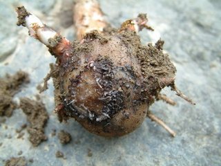 (3)田間管理,發(fā)病初期及時(shí)拔除病株,防止擴(kuò)展蔓延,并帶出田間銷毀,同時(shí)在病穴及周圍撒一些石灰。做好防旱排澇,魔芋出苗后,需水量加大,根據(jù)土壤干濕情況,適時(shí)利用早晚時(shí)間,及時(shí)進(jìn)行噴灌或畦間漫灌,保持土壤濕潤(rùn),促進(jìn)塊莖膨大。若遇大雨天氣,要及時(shí)排水,以防漬水引起魔芋根莖腐爛。