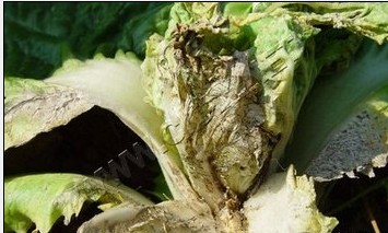 大白菜苗期發(fā)病,心葉葉脈失綠,葉片出現(xiàn)深淺不均的綠色斑駁或花葉。成株期發(fā)病,葉片嚴重皺縮,質硬而脆,常生許多褐色凹陷壞死條狀斑,植株明顯矮化畸形發(fā)展為無法食用。