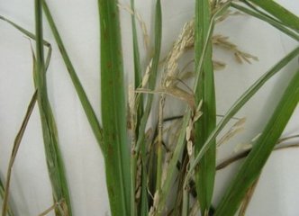 (4)谷粒瘟:發(fā)病早的穎殼全部變成灰白色形成秕谷。發(fā)病晚的產(chǎn)生褐色隨圓形成不規(guī)則病斑,嚴重受害的可使米粒變黑。