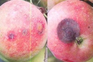在果面上產(chǎn)生淺褐色、有清晰邊緣的圓形小斑,隨著病斑的逐漸擴大,病部色澤隨之加深,并向下凹陷,表面長出按同心輪紋排列的黑色小粒點(即分生孢子盤),空氣潮濕時,病斑表面會生出粉紅色粘物質(zhì)(即分生孢子)。果肉向內(nèi)腐爛時,呈潯斗狀,腐爛處果肉變褐色。多數(shù)品種在著色前感病時,病斑周圍的健部果皮變紅,形成一個紅色圓圈。病果往往早熟,著色提早,并容易早落。蘋果在發(fā)病規(guī)律上病菌以菌絲體在枯枝、果臺、僵果等部位越冬并形成分生孢子盤,次年夏天產(chǎn)生大量分生孢子,成為初次侵染源,由風雨和昆蟲等傳播。初次發(fā)病時間每年不一,較早5月中旬,較遲7月上旬,一般6月中下旬開始發(fā)生,8月中下旬為發(fā)病高峰。