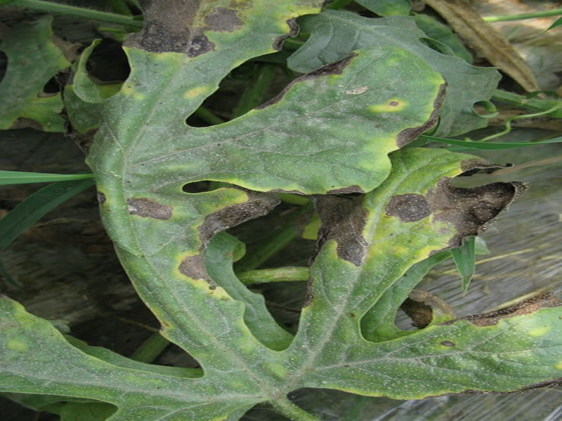 西瓜炭疽病是由半知菌亞門刺盤孢屬真菌侵染所致,其發(fā)病較適溫度為22-27℃,10℃以下、30℃以上病斑停止生長。病菌在殘棵或土里越冬,第二年溫度濕度適宜,越冬病菌產(chǎn)生孢子,開始初次侵染。附著在種子上的病菌可以直接侵入子葉,引起幼苗發(fā)病。病菌在適宜條件下,再產(chǎn)生孢子盤或分生孢子,進(jìn)行再次侵染,炭疽病的發(fā)生和濕度關(guān)系較大,在適溫下,相對(duì)濕度越高,發(fā)病越重。